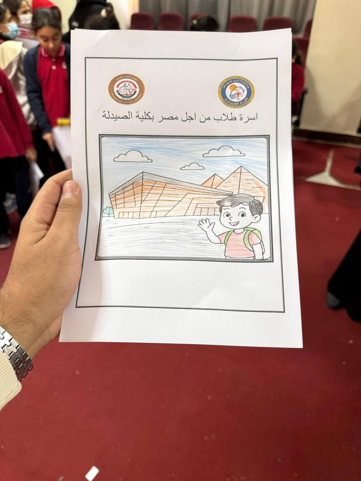 وقام بالحمله طلاب المستوى الخامس لبرنامج بكالوريوس الصيدلة فارم دى (صيدلة اكلينيكية) بالمشاركه مع طلاب من اجل مصر بكلية الصيدلة.