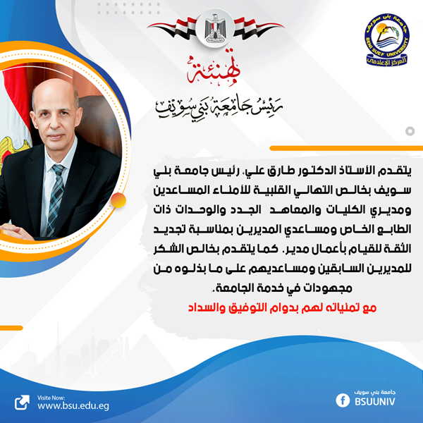 The Council of Beni Suef University, headed by Dr. Tarek Ali, Acting President of the University, honored Dr. Mohamed Madi in its session No. (254).
